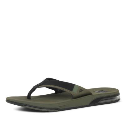 Schoenenwinkel.nl | Deze Fanning Low heren teenslippers zijn uitgevoerd in de kleur groen en uitgerust met een voorgevormd EVA voetbed met een 360 graden airbag onder de hiel Gaaf detail van deze Reef Fanning Low slipper is de ingebouwde flessenopener in de zool Handig voor onderweg of op het strand